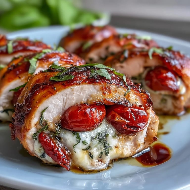 I once cooked Caprese Stuffed Chicken for a picnic with friends right as an unexpected summer storm rolled through. We ended up eating inside, plates balanced on our laps, with laughter echoing and napkins fluttering under the fan. The mosaic of tomato and basil peeking out from perfectly cooked chicken made everyone forget the gloomy sky, and someone insisted it made her year feel brighter. That moment convinced me each ingredient brought more than just flavor—they set the mood for the evening.