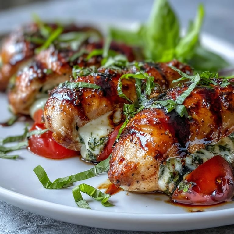 - Let the chicken rest for 5 minutes before slicing, then drizzle with balsamic glaze and scatter basil for both flavor and flair.