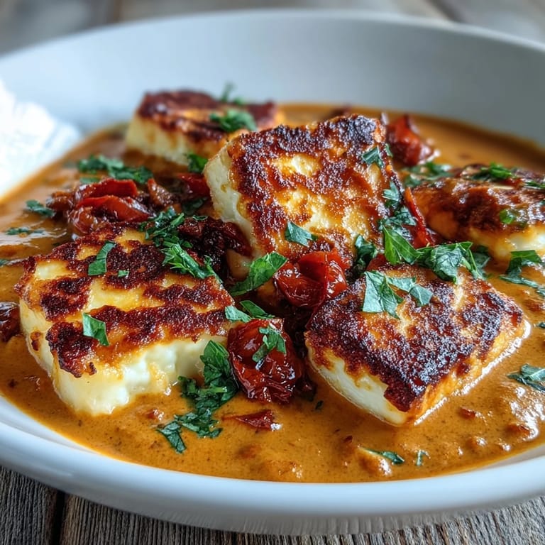 Save My neighbor knocked on the door one evening holding a block of halloumi and asked if I knew what to do with it. I'd been craving something warming and creamy, so I pulled out a can of coconut milk and built this curry from whatever I had in the pantry. The halloumi turned golden and squeaky in the pan, soaking up the spiced tomato sauce like a sponge. We ended up eating straight from the skillet with torn naan, laughing at how something so simple tasted this good. That spontaneous dinner became a weekly ritual.