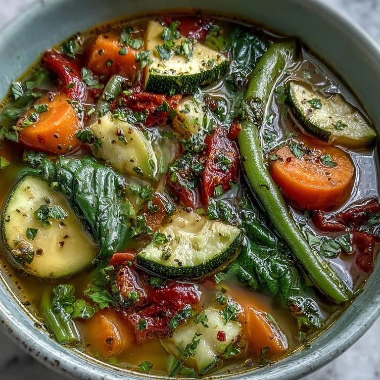 Save A vibrant and hearty soup brimming with Mediterranean vegetables and aromatic Italian herbs, this Italian Herb Vegetable Soup is perfect for a light meal or a comforting starter. The combination of fresh carrots, zucchini, and green beans in a savory tomato broth brings a taste of the Mediterranean directly to your kitchen.