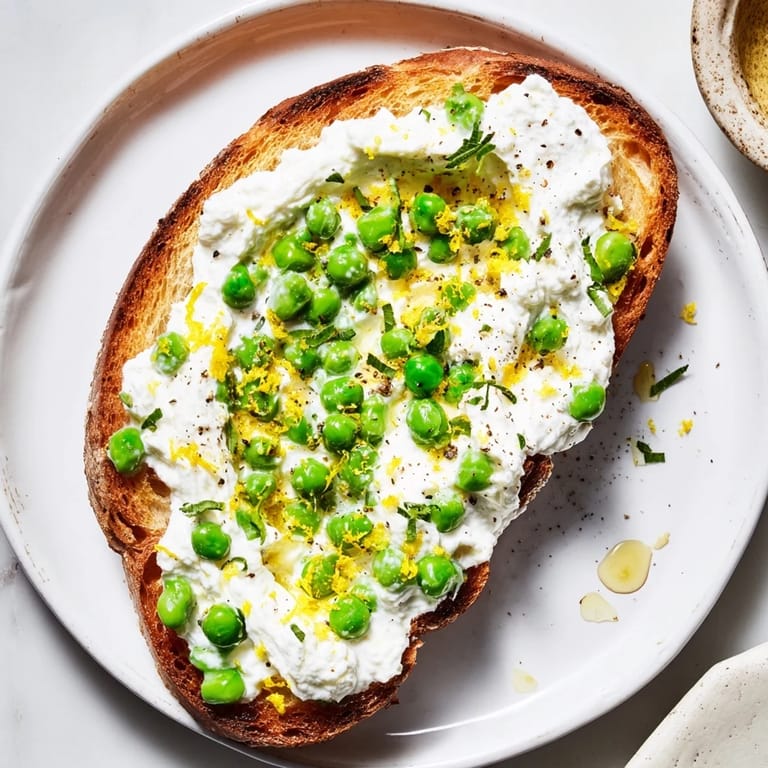 Save Last spring, my neighbor dropped off a bag of fresh peas from her garden, and I found myself standing in my kitchen popping them raw, overwhelmed by how sweet they tasted. That afternoon, I whipped up this toast on impulse, blending those bright green gems with creamy ricotta and a handful of mint from my windowsill. The first bite stopped me in my tracks. Something about the combination, the way the fresh peas played against the rich cheese and the zest cutting through it all, felt like discovering a secret language between ingredients.