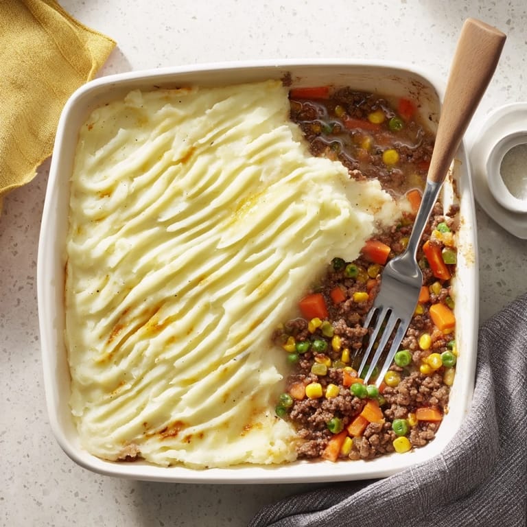 - Spread the meat mixture in your baking dish, then spoon the mashed potatoes over the top. Use a fork to create those signature ridges that get extra crispy, then bake until golden and bubbling, about 25 to 30 minutes. Let it rest for 10 minutes before serving, or the filling will slide right out when you cut it.