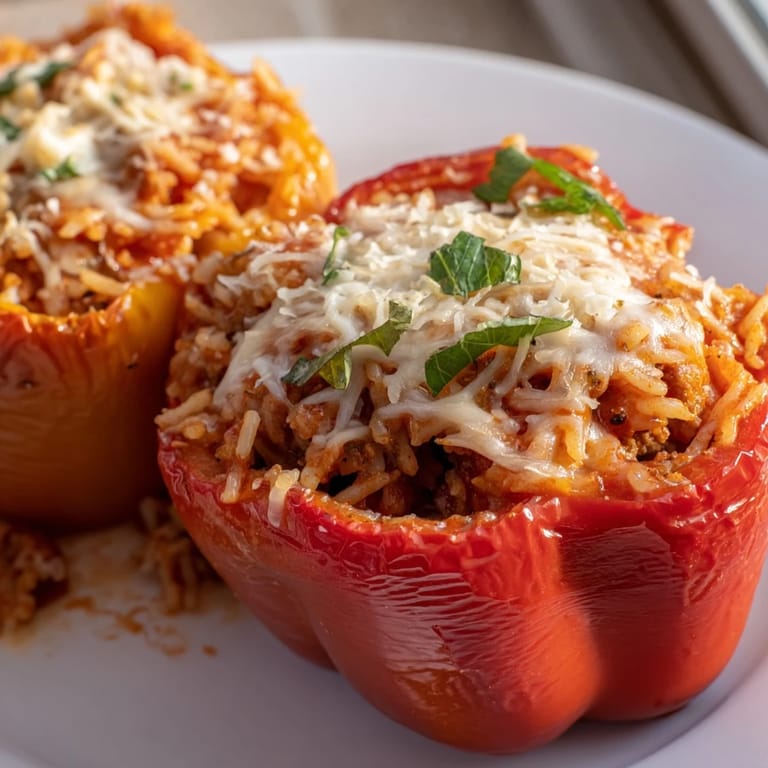 Save The first time I made stuffed peppers, I accidentally bought peppers that were too small to stand up straight in the baking dish. They kept tipping over, spilling their filling everywhere while my dinner guests laughed. Now I always pick sturdy, flat-bottomed peppers, and somehow that memory makes every batch taste better.