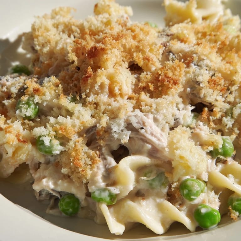Save The smell of bubbling cheese and buttery breadcrumbs still takes me back to tiny apartment kitchens where dinner needed to feed a crowd without breaking the bank. My roommate Sarah and I stumbled onto tuna casserole during one particularly lean month, and somehow what started as pantry cleanup became the dish everyone actually requested when they came over. Now whenever that golden crust emerges from the oven, Im transported back to those cramped but happy evenings, bottles of wine on the floor, laughter bouncing off walls, seconds being scooped before anyone had even finished their first serving.