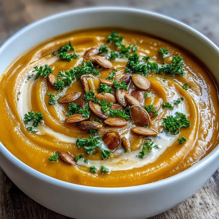- Ladle into bowls and add your chosen garnishes—a drizzle of cream, toasted pumpkin seeds, and fresh herbs create visual appeal and add texture that makes each spoonful interesting. These finishing touches are what transform a good soup into something that feels special.